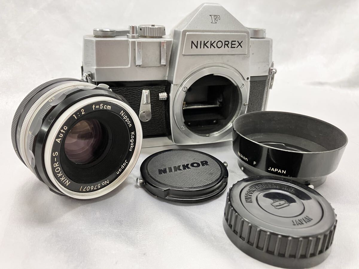 > [T8441] Nikon ニコン ボディNIKKOREX F レンズ NIKKOR-S Auto 1:2 f=5cm ジャンク 一眼レフ フィルムカメラ