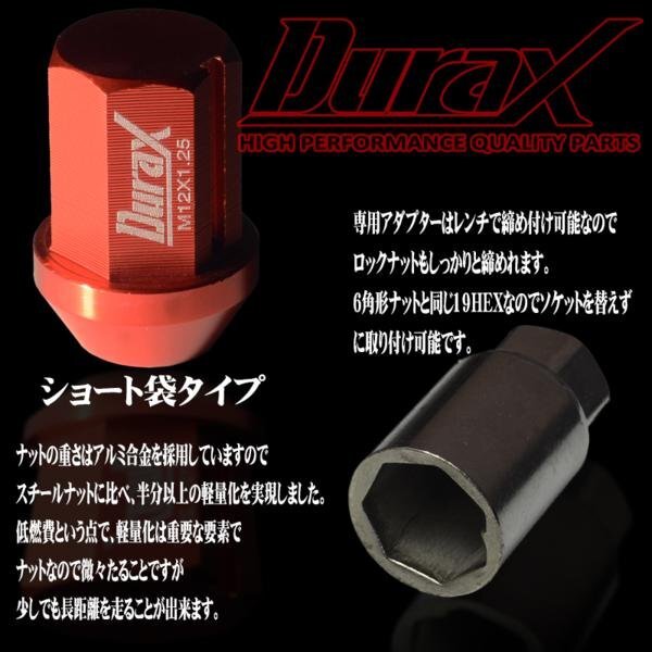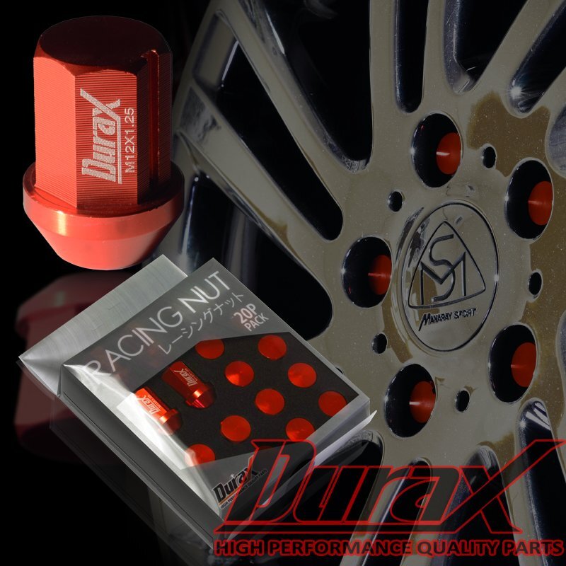 > ホイールナット DURAX製 ロックナット ショート袋ナット 34mm レーシングナット 20個 赤 レッド P1.25 短袋型 日産 スズキ 125RS