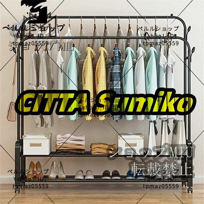 - 特売!品質保証★全長135CM ハンガーラック 2段 可動棚 高耐荷重 コートハンガー 収納棚 スチール棚 洋服掛け おしゃれ ホワイト