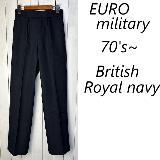 - 美品 70s? イギリス軍実物 ワーキングトラウザーズパンツ 72 黒 ヨーロッパ 秋冬春 ミリタリー オールド ポリウール XS スラックス ●121M