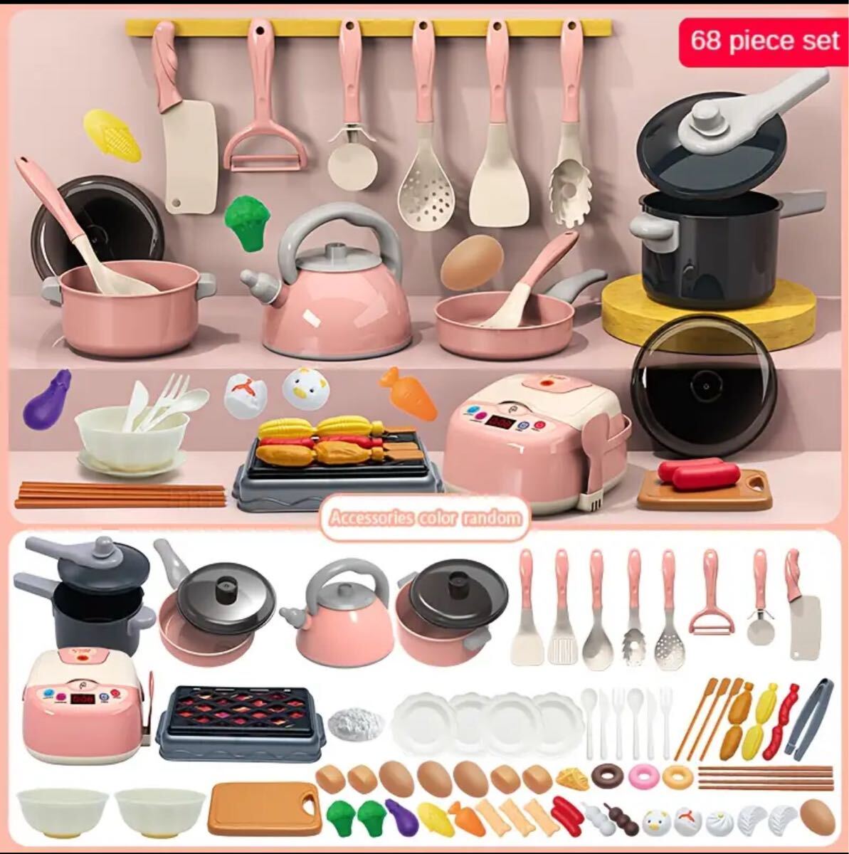 - 68点セット 調理器具 カット食べ物 野菜 果物 食器 知育玩具 おままごと