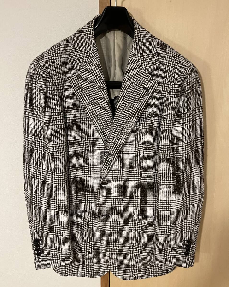 > リングヂャケット【RINGJACKET】春夏物マイスター仕様ハンドメイドライン E.THOMASウール&リネン白黒グレンチェック【46】