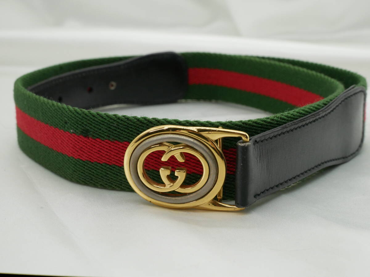 - グッチ シェリーライン インターロッキング ベルト レッド グリーン ブラック レザー イタリア製