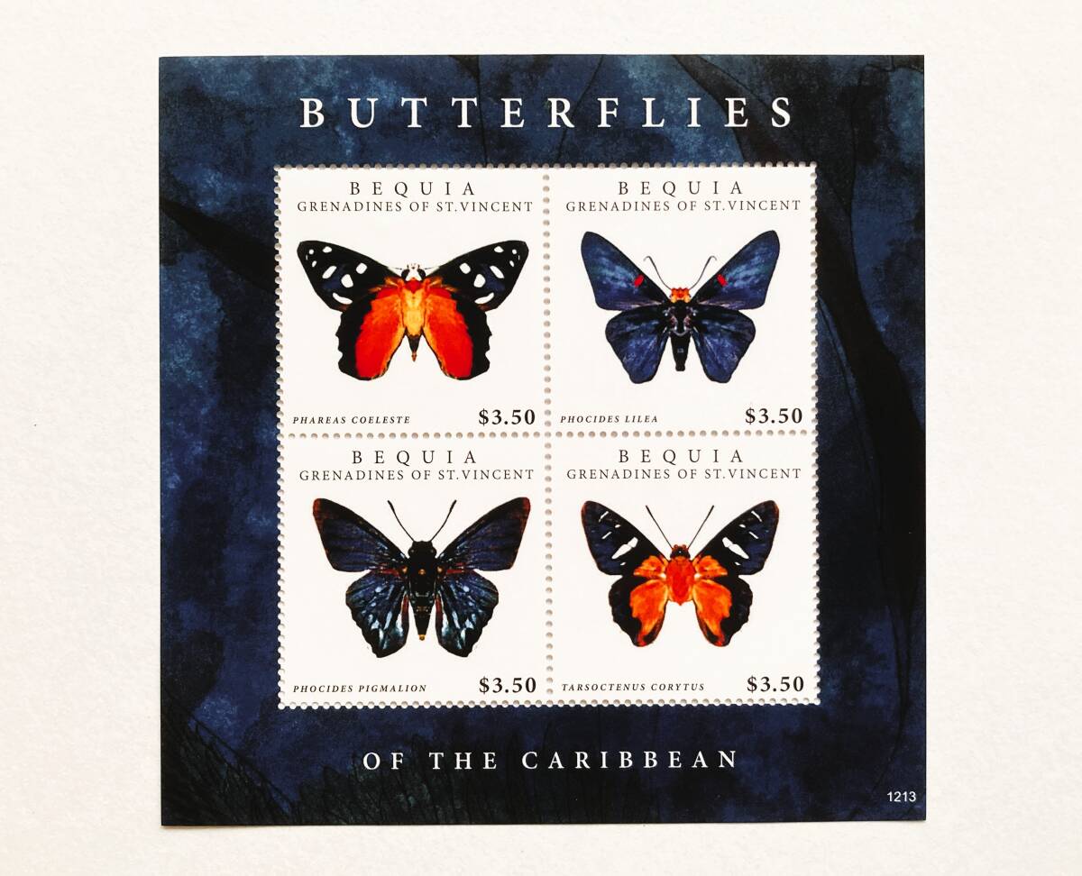 - 外国切手 セントビンセント・グレナディーン諸島、ベキア島切手 「カリブ海地域の蝶(チョウ)」ピグマリオンセセリ4種m/s 未使用