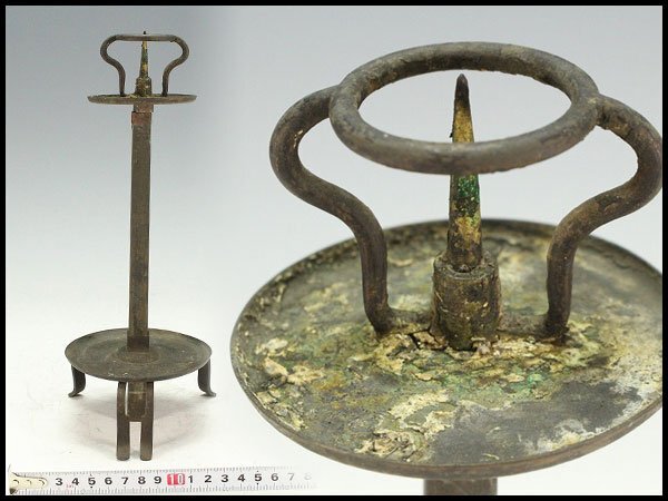 - 【金閣】古銅 自在 伸縮 燭台 時代物 旧家蔵出 送料無料(YC586)
