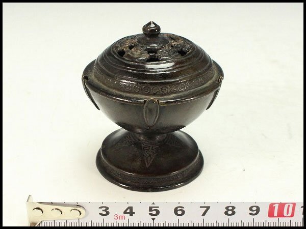 - 【金閣】茶道具 唐物 古銅 蓋置 旧家蔵出 送料無料(A825)