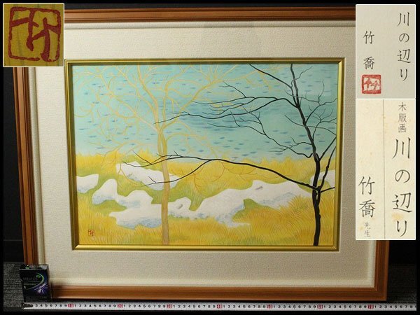 - 【金閣】小野竹喬 木版画 川の辺り 共シール 美品 旧家蔵出 送料無料(LC924)