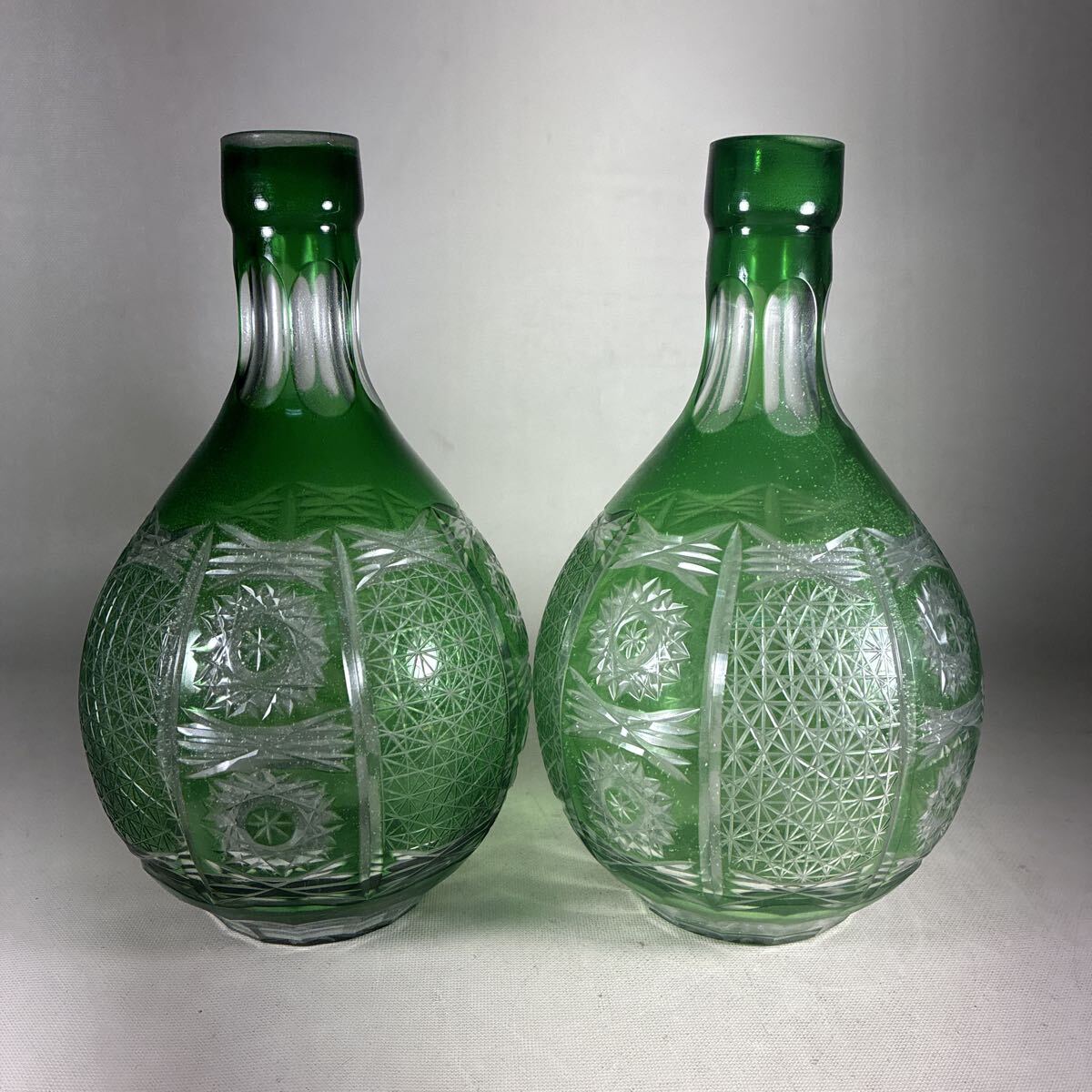 - オールド江戸切子 ガラス デキャンタ 徳利 酒器 アンティーク2客