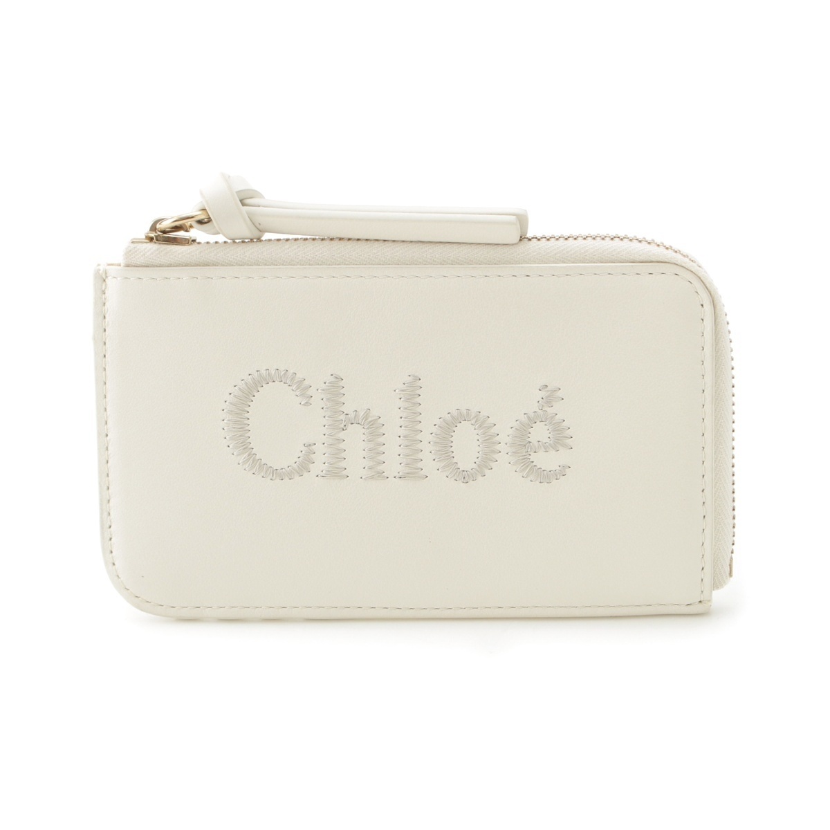 > クロエ レザー ロゴ 刺繍 フラグメントケース コインケース ホワイト【中古】