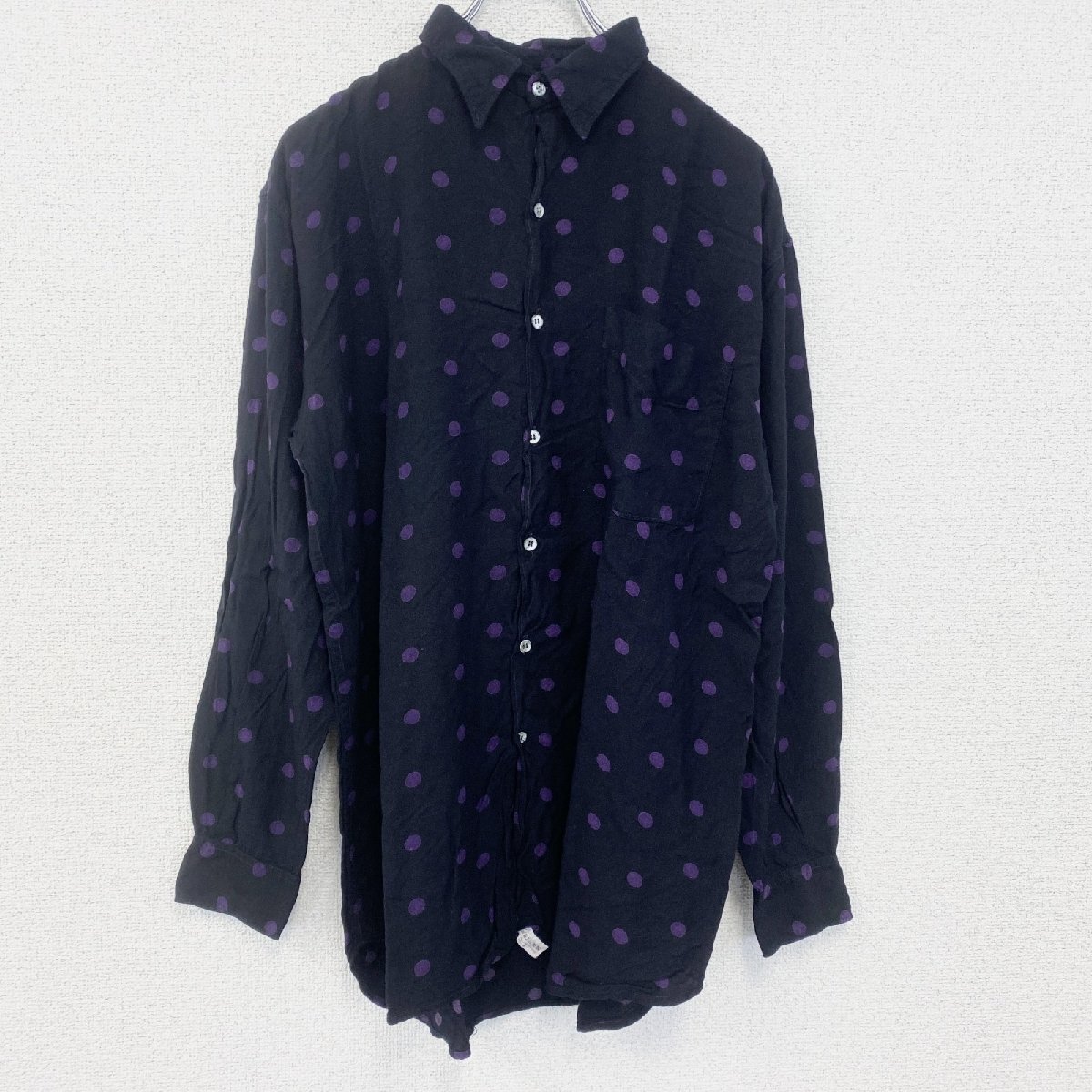 > 古着 used COPY RIGHT 長袖プリント柄シャツ ドット 水玉 レトロデザイン 胸ポケット 黒 ブラック 紫 パープル