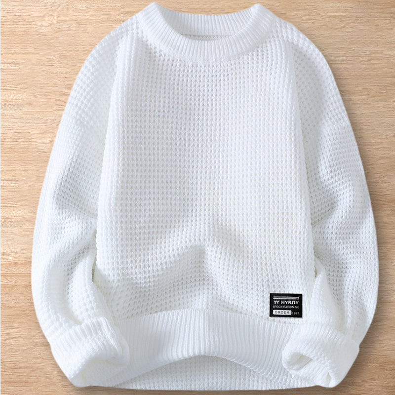 > Y204-XL ホワイト 新品DCKMANY ウール混 ニット セーター プルオーバー ふんわり 編み 長袖 無地 暖かい 防寒 厚手 秋冬 メンズ トップス