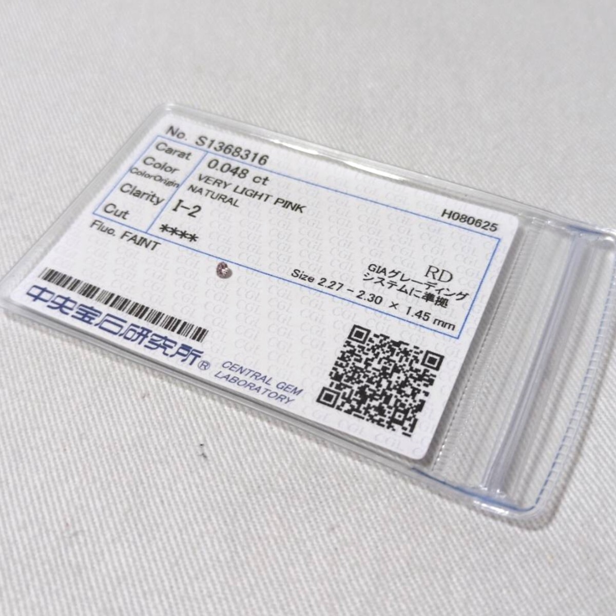 - ダイヤモンド ルース 0.048ct VERY LIGHT PINK I-2 RD FAINT 中央宝石研究所