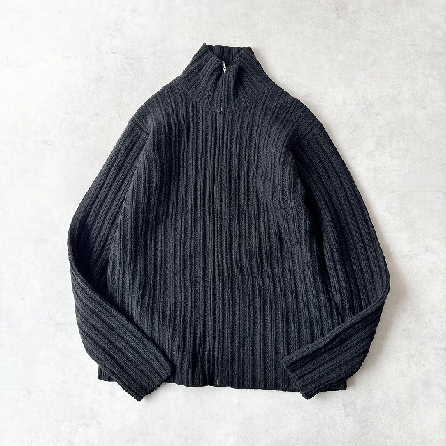 - Paul Smith ポールスミス ウール100% リブ編み ドライバーズニット スタンドカラー フルジップ カーディガン セーター (XL) 黒 / r-981