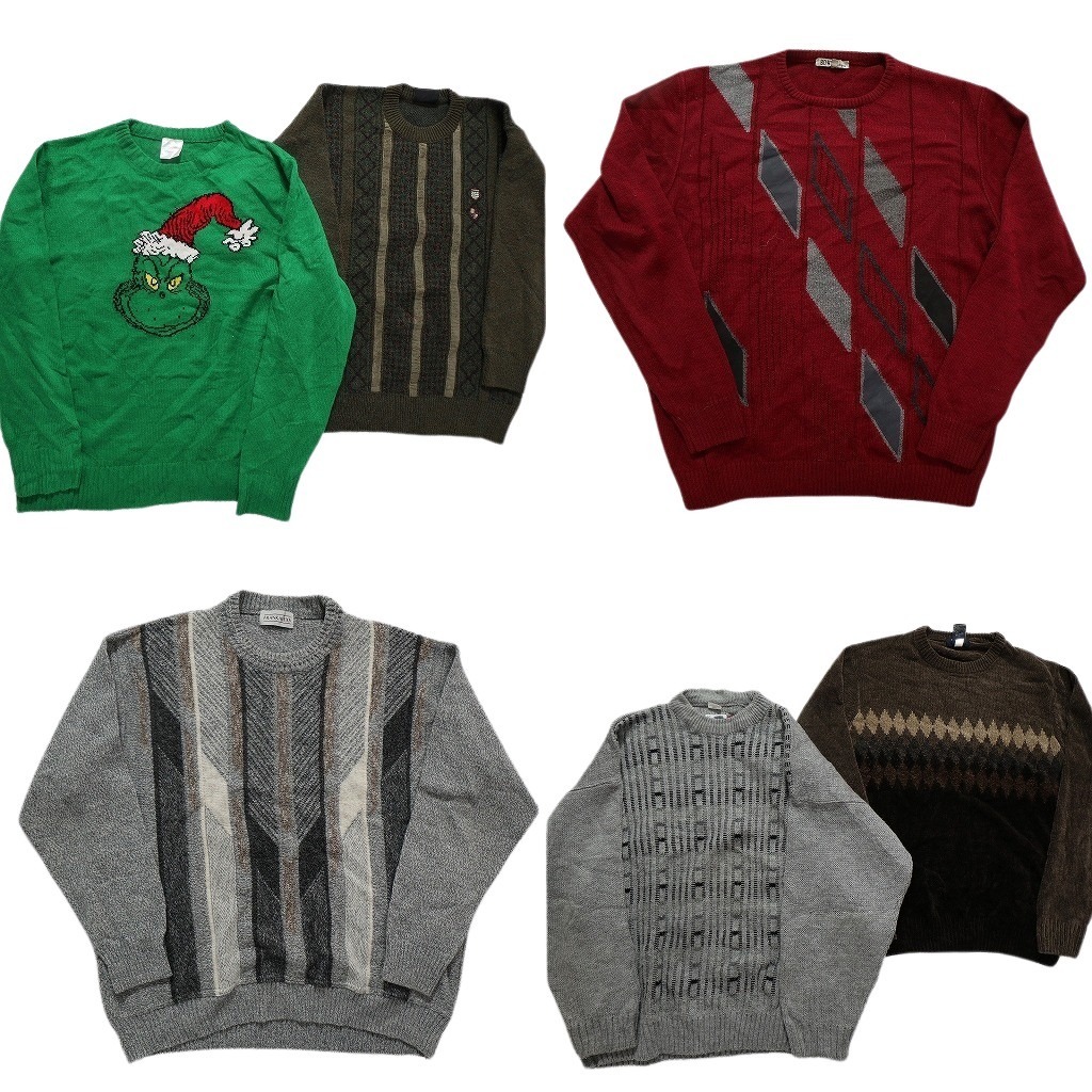 - 古着卸 まとめ売り ニットMIX セーター 6枚セット (メンズ M ) グリンチ キャラクター キャラクター ダイヤ柄 NC3515 1円スタート