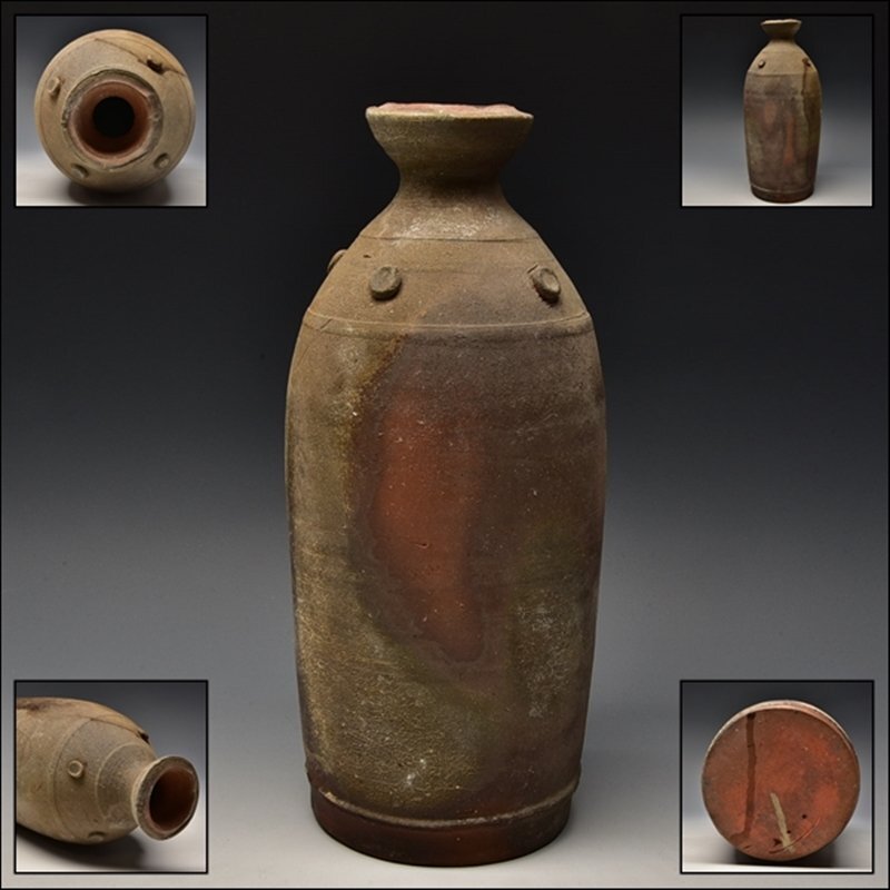 > U08768 吉本正 備前 窯変 花入 花生 花器 花瓶 壺 茶道具 師 人間国宝 藤原啓
