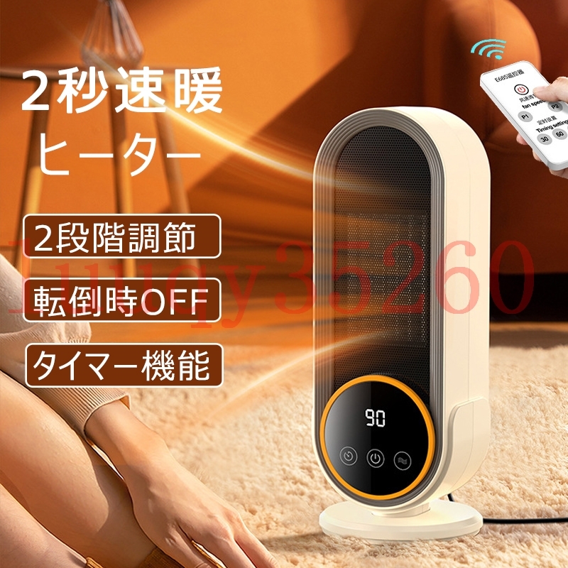 - 電気ファンヒーター セラミックヒーター 小型 上 PTC 速暖 転倒自動OFF 静音 過熱保護 暖房器具 省エネ 足元 タイマー 節電 温風 脱衣所