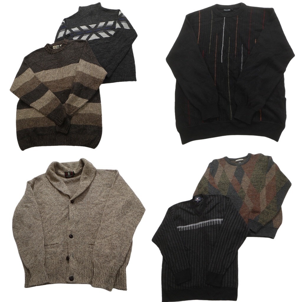 - 古着卸 まとめ売り ニットMIX セーター 6枚セット (メンズ XL ) ショールカラー Vネック ハーフジップ ボーダー NC3562 1円スタート