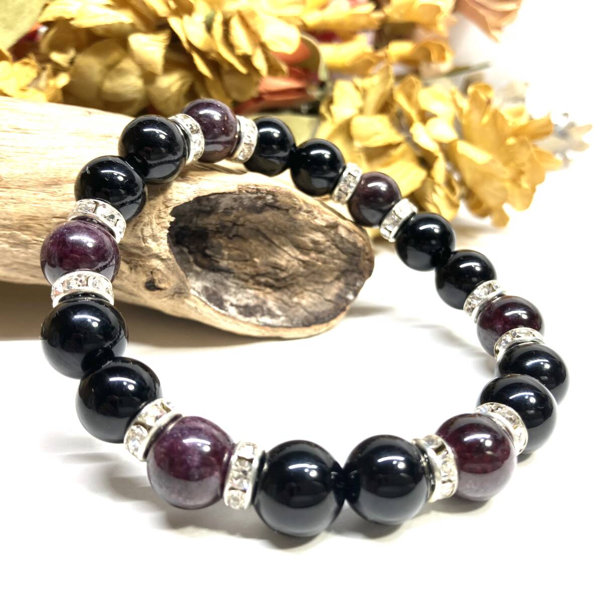 > モリオン&ガーネット パワーストーン ブレスレット 天然石ブレス (シルバー) 10mm メンズ・レディース 厄除け 恋愛運 ☆