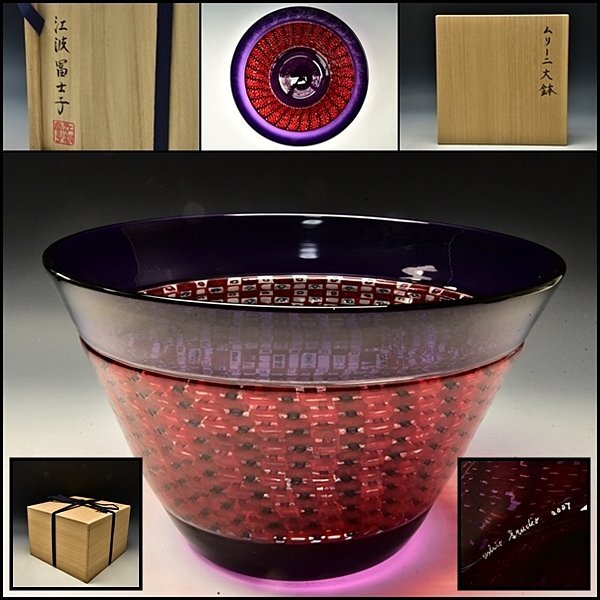 - U08965 江波冨士子 ガラス ムリーニ 大鉢 鉢 ボウル ムラーノ ヴェネツィア モザイク 共箱