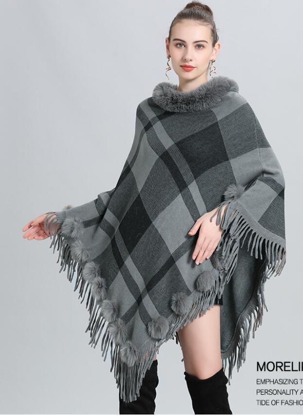- M1020 ポンチョレディース● 着心地抜群 20代30代40代 ● 防寒 ニット素材 フリンジ グレー