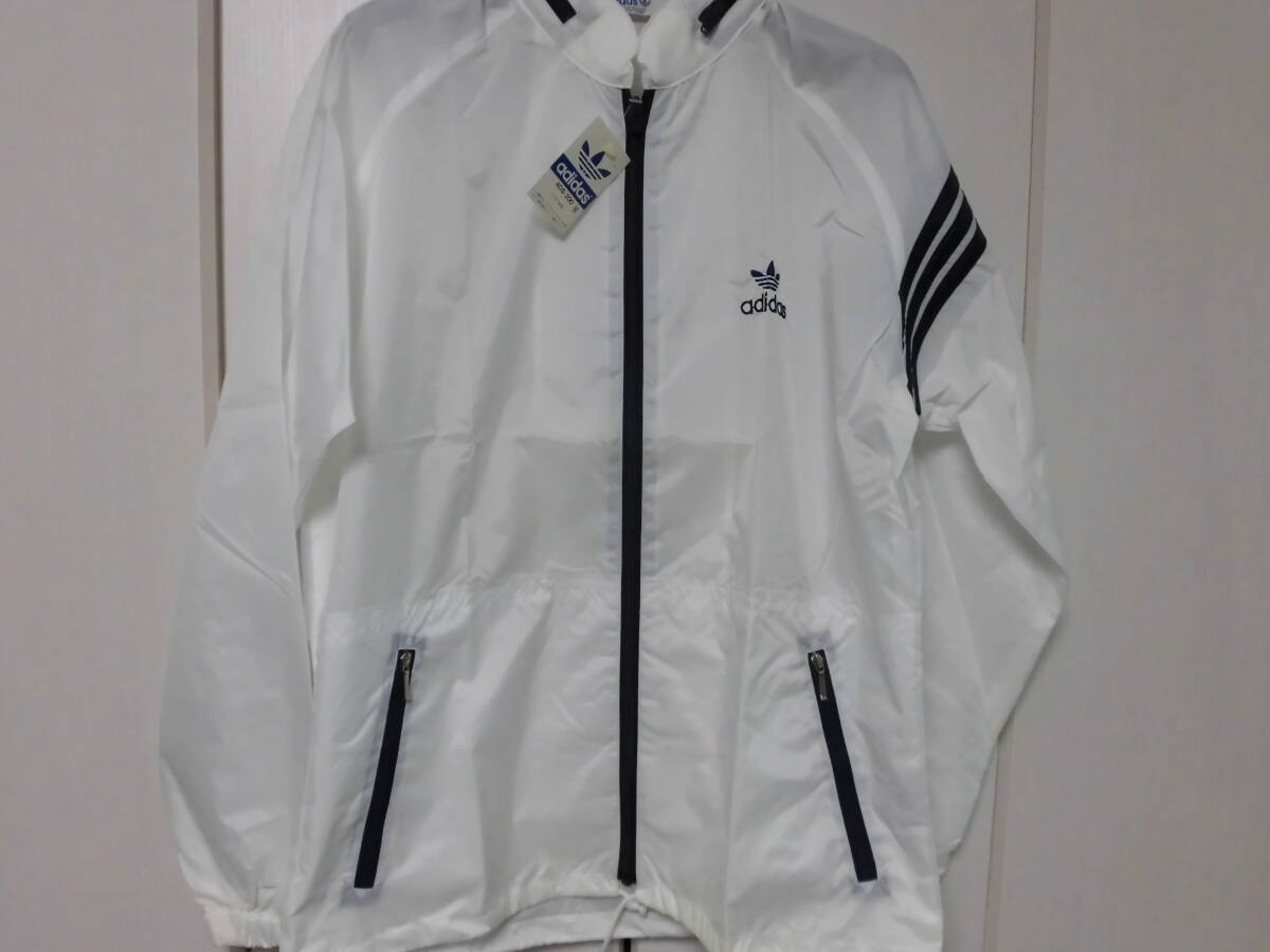 - レトロ デサント アディダス adidas 当時物 薄手 ウインドブレーカー ヤッケ ジャケット スクール 古着 白 ナイロン 5433
