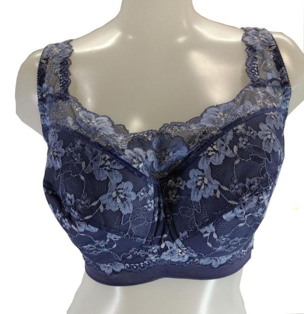 - SI1792◆ 新品 すっぽりレースブラ アンダーメッシュ 胸元レース 全体レース D85 ブルーグレー 送料450円