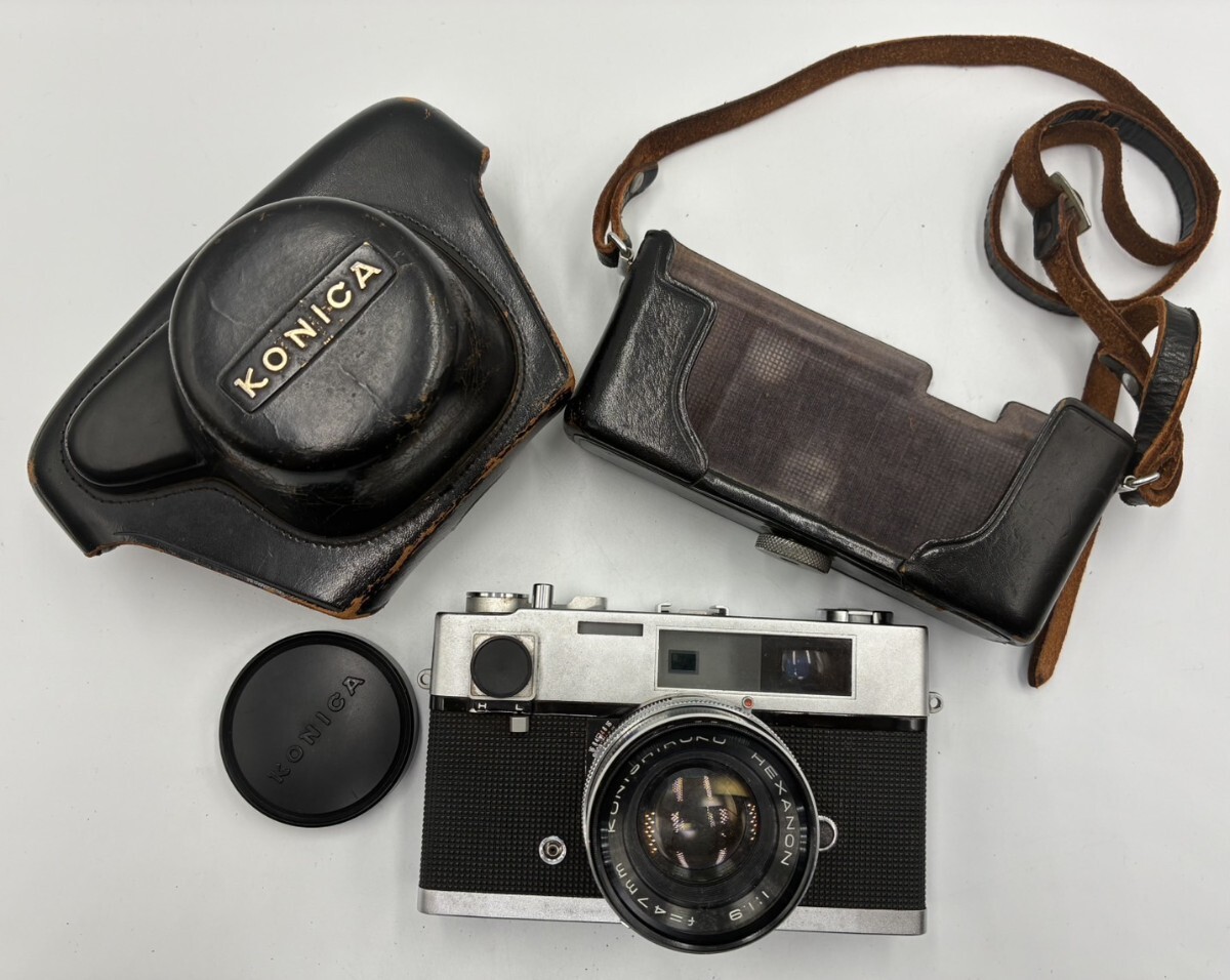 - 1円スタート コニカ フィルムカメラ KONICA Auto S ケース付き hexanon 1:1.9 f=47mm 現状品AY1020-8