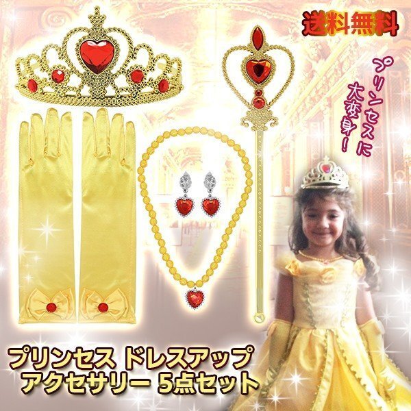 - プリンセス ドレスアップ アクセサリー 5点セット キッズ 子供 ディズニーコスプレ ティアライヤリングステッキ ベル 美女と野獣ハロウィン