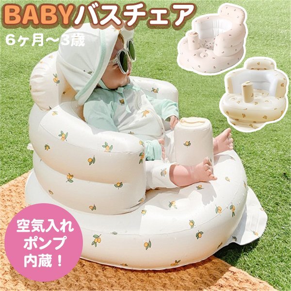 - ベビー バスチェア 椅子 空気 赤ちゃん 新生児 幼児 乳児 お風呂 食事 軽量 空気エア 折りたたみ 簡単収納 子供くまチューリップオリーブ