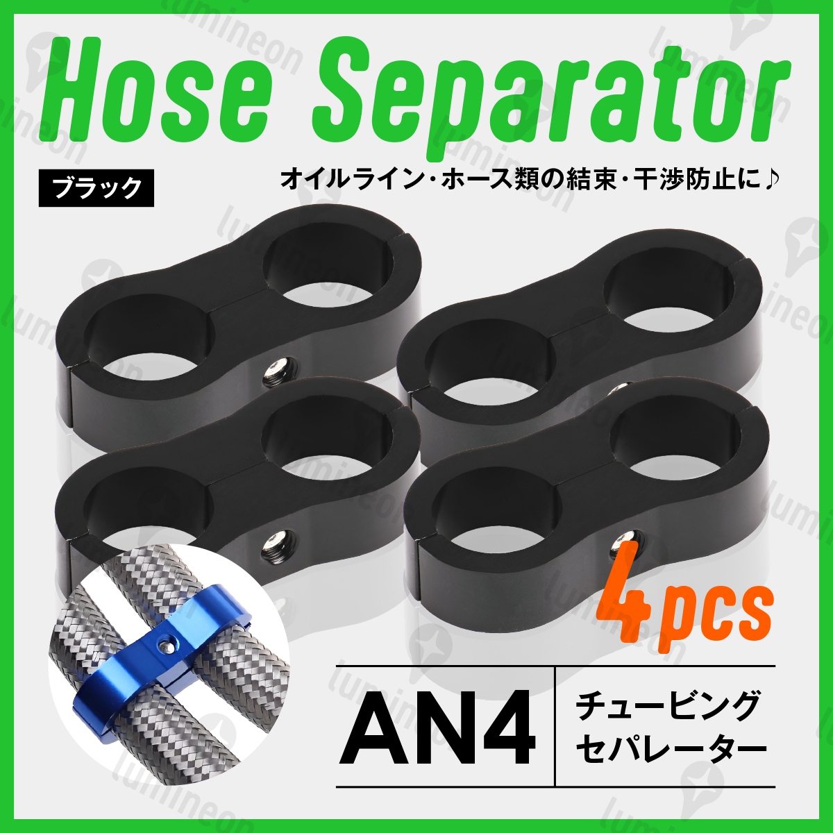 > ホース セパレーター チュービング クランプ 4個 セット フィッティング アダプター バイク 二輪 車用 AN4 配線 固定 ブラック 黒 g231c1 1