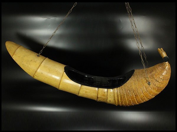 - 【金閣】茶道具 竹根 舟形 吊り 花器 詫び寂 旧家蔵出 送料無料(LC943)