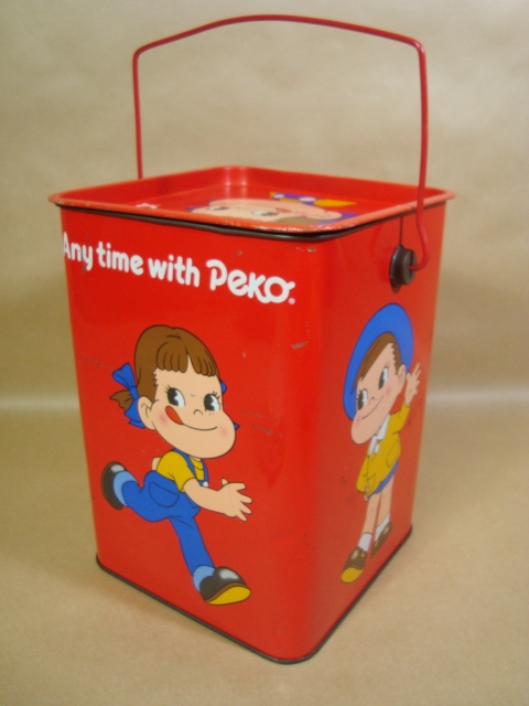 - レトロ★不二家 ペコちゃん★バケツ缶 ブリキ缶 角型★当時物