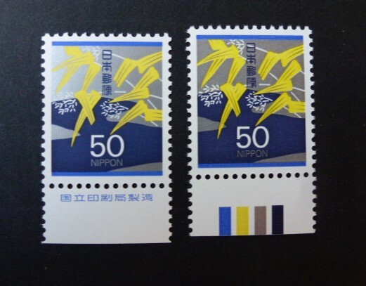 - 国立より 50円 弔用 カラーマーク下と銘版 2枚組 未使用 美品 D-35-3s