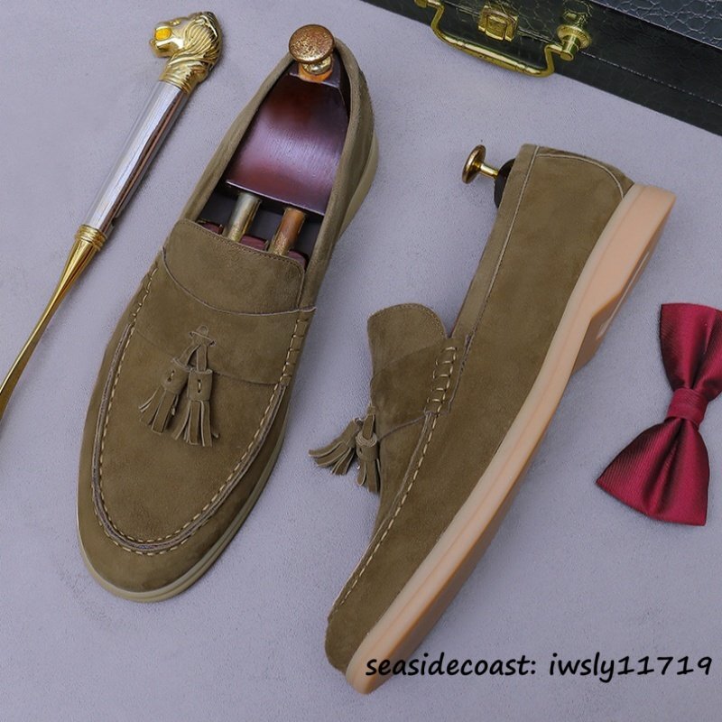 - 最高級★ビジネスシューズ 本革 メンズ ドライビングシューズ 職人手作り ローファー スリッポン スエード革 紳士靴 革靴 ブラウン 27.0cm