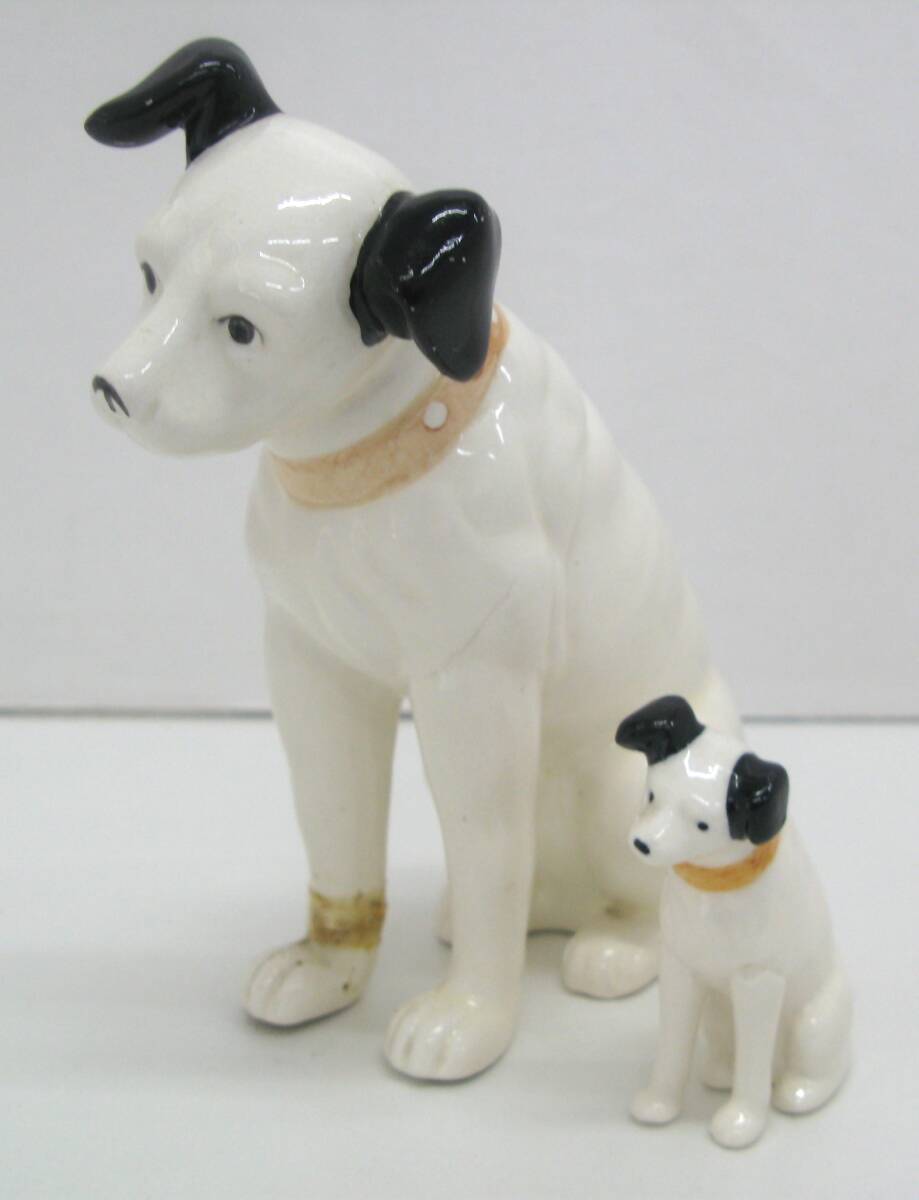 > 【菊水-587】(KB)犬 陶器製/置物/インテリア/昭和レトロ/アンティーク/大16cm小7cm2個セット/破損修復跡あり(TK)
