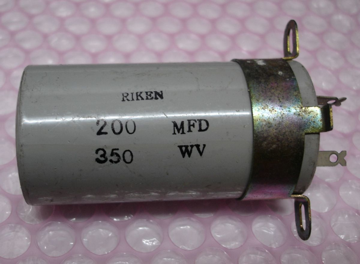 RIKEN(理研電具?) コンデンサ 350V 200μF 取付金具付 .HG1