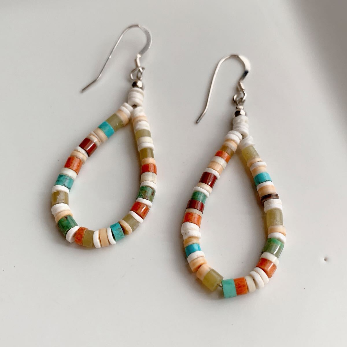 - インディアンジュエリー ピアス サントドミンゴ マルチカラー シェル ターコイズ ヘイシビーズ シルバー