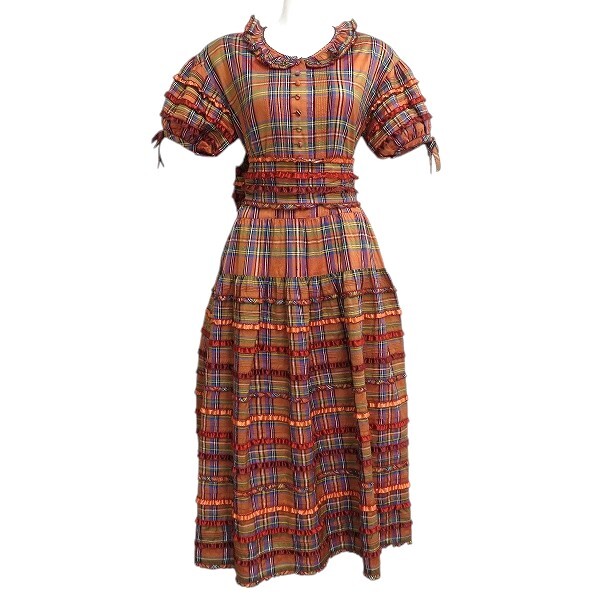 - #su ワンダフルワールド WONDERFUL WORLD カネコイサオ 半袖 ワンピース オレンジ チェック 絹 ピコフリル コレクター [970472] k01