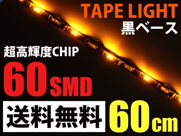 - 側面発光 LEDテープライト アンバー 60cm 60SMD 黒ベース 防水 送料無料 tl6