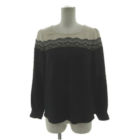 - ビアッジョブルー Viaggio Blu バイカラーレースボートネックブラウス 2606-16203 長袖 日本製 ブラック 黒 グレージュ 1 レディース