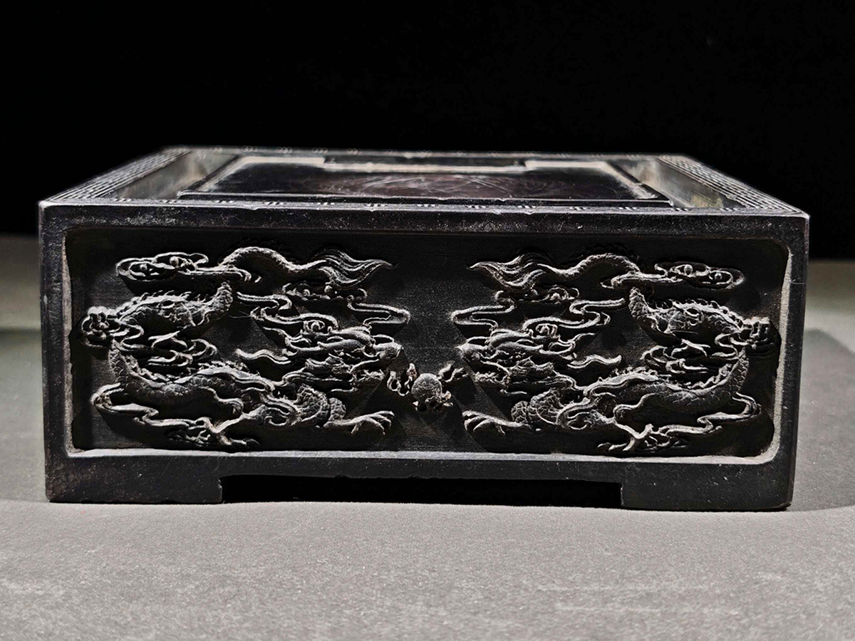 - ▽鴻▽清時代 李振鈞銘 端石彫 双龍戯珠紋石渠硯 端渓硯 唐硯 墨寶 書道具 時代物 中国古美術 骨董品
