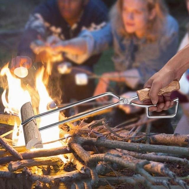 - 焚火用 薪鋏 ステンレス グリップ火ばさみ 炭ばさみ 柴はさみ キャンプ