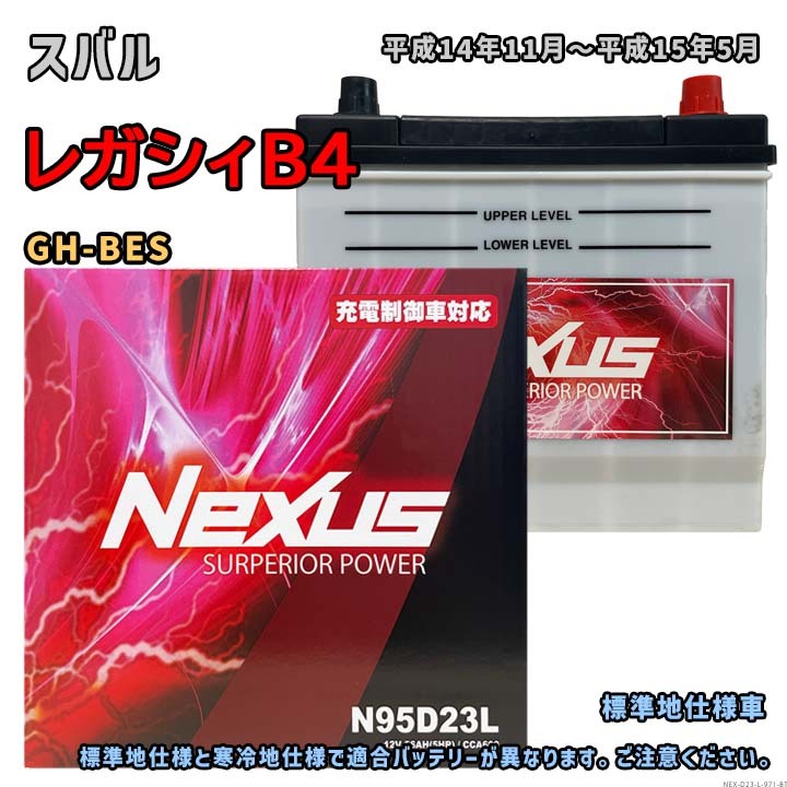 > バッテリー NEXUS N95D23L スバル レガシィB4 GH-BES 平成14年11月~平成15年5月 S401 STi・4WD 対応 D23L 互換 971