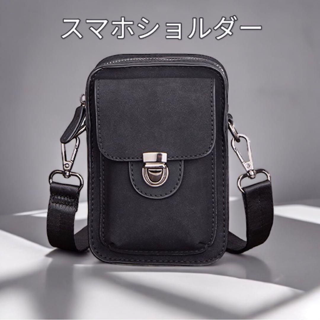 - ショルダーバッグ ミニショルダーバッグ スマホショルダー メンズ 斜め掛け 肩掛け 軽量 スマホ 携帯 腰ベルト 黒色 送料無料 最短発送
