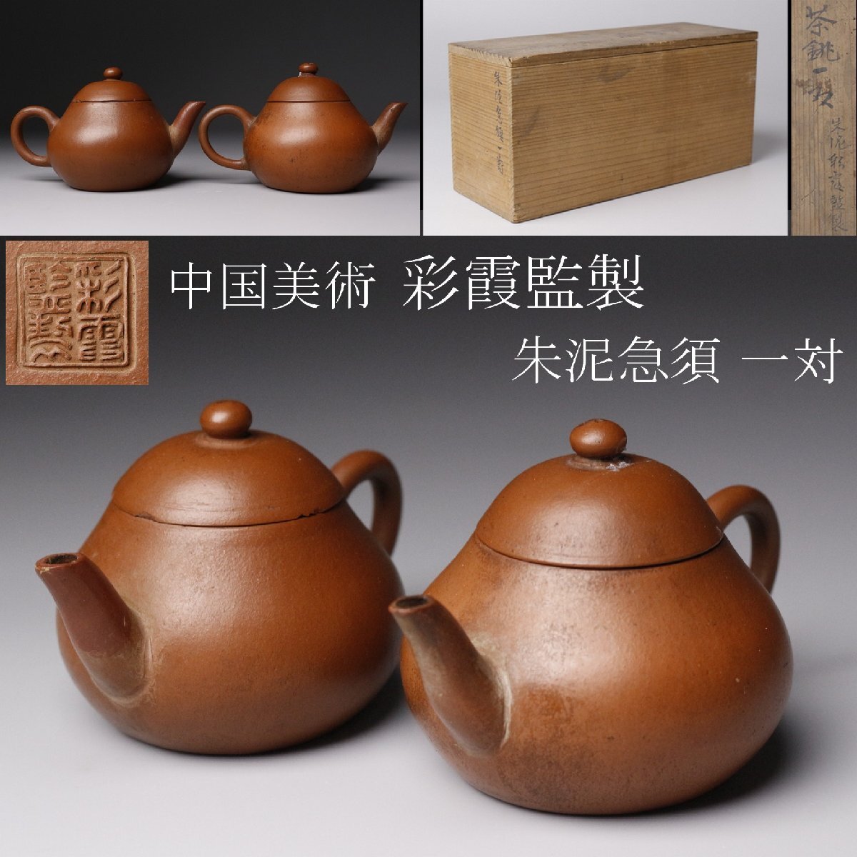 - 【LIG】中国美術 彩霞監製 朱泥 急須 一対 煎茶道具 時代唐物 時代箱 旧家蔵出品 [.YQ]25.10