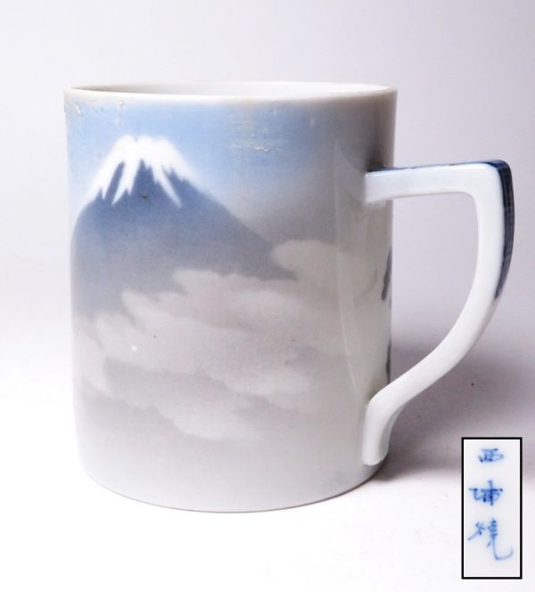 - 【12174】明治期 瀬戸 西浦焼 富士山図 マグカップ ①(初品・買取品)