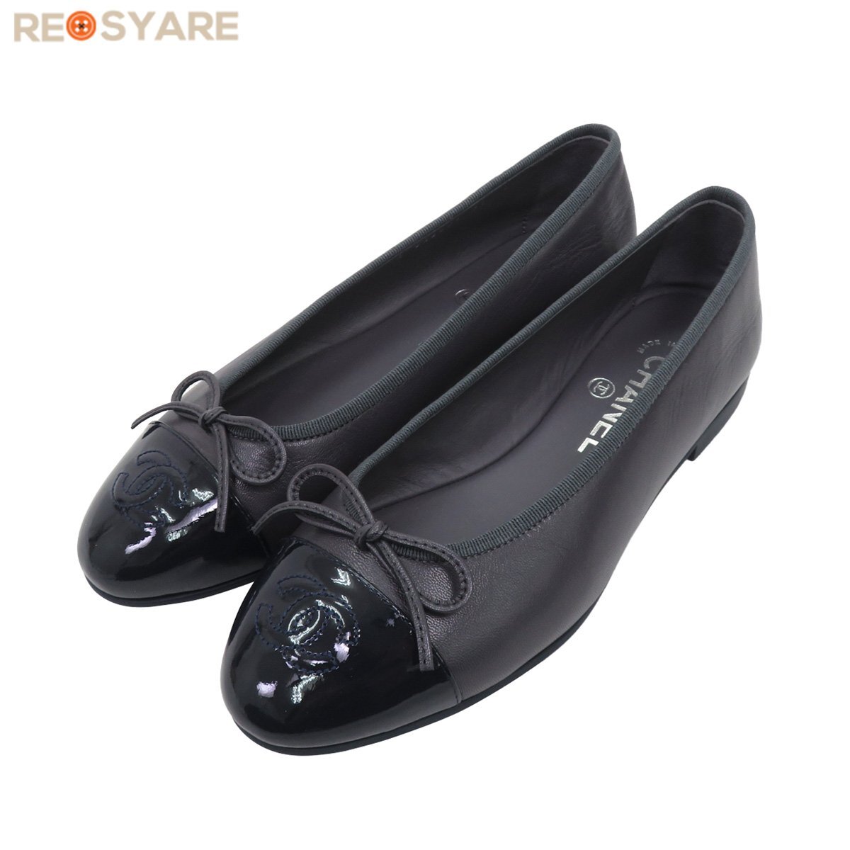- 【2025年新作 展示品】CHANEL シャネル G46027 バレリーナ リボン フラット シューズ パンプス サイズ37 ダークグレー 定価20万 47495