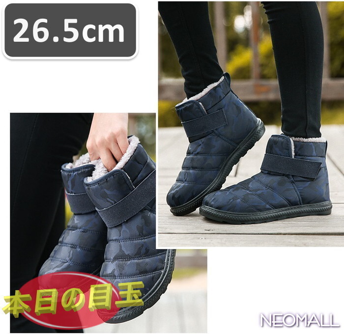 > ユニセックス スノーシューズ 【870】 26.5cm 迷彩ネイビー ムートンブーツ スニーカー ウィンターブーツ 裏起毛 防水 防寒 防滑 冬用靴