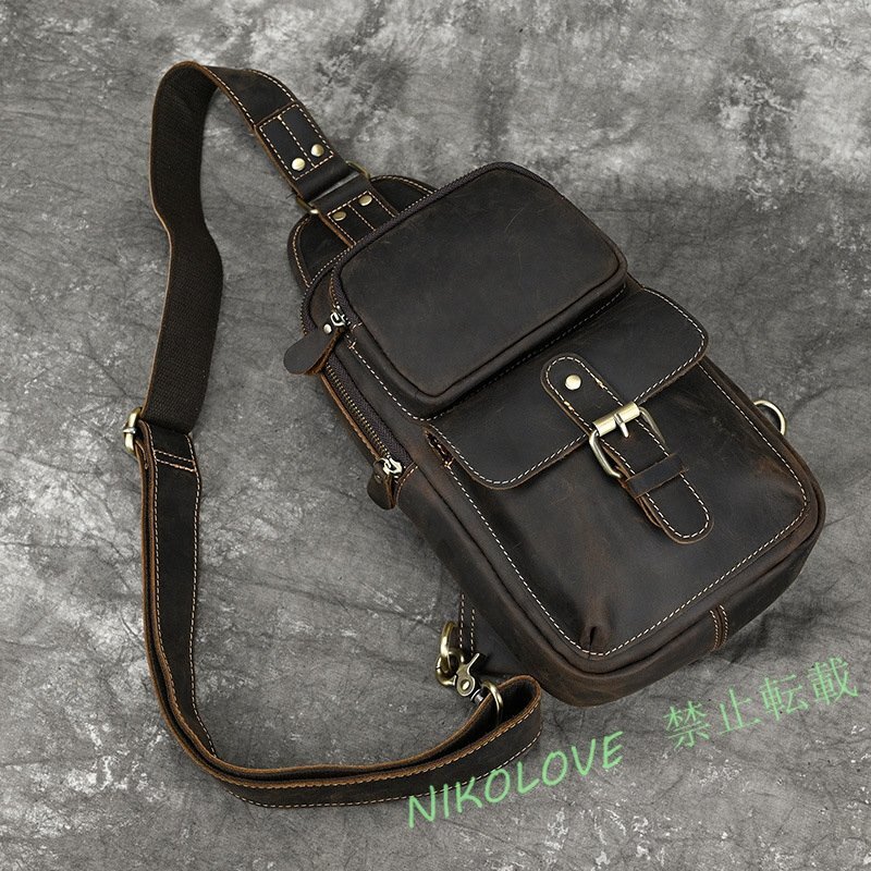 - ☆新品美品 ボディバッグ 牛革 レザー メンズバッグ ワンショルダーバッグ 斜め掛け ショルダーバッグ 機能性良い 通学 本革保証