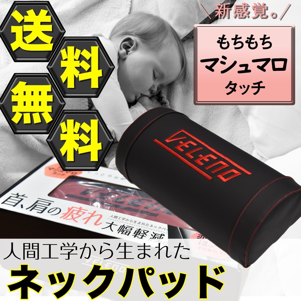 - VELENOネックパッド 首 肩 疲れ大幅軽減 もちもちマシュマロタッチ 極上 肌ざわりPUレザー 枕 ブラック&レッド 送料無料